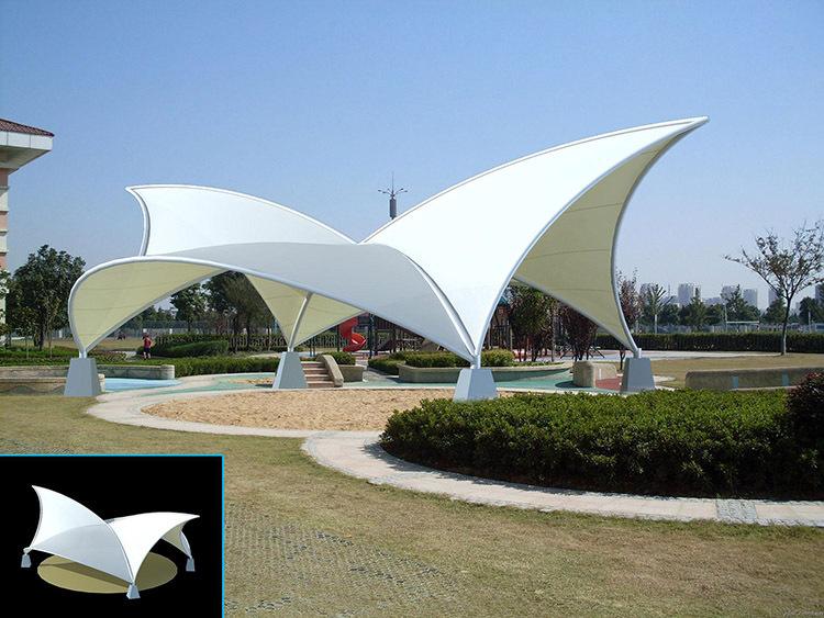 2、張力式膜結(jié)構(gòu):主要是利用簡單的支撐系統(tǒng)及膜素材自身的張力特性組成的膜結(jié)構(gòu)。